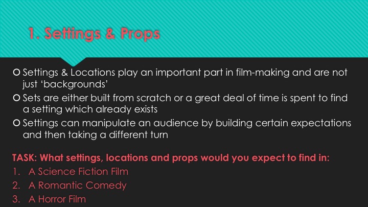 L/O: To explore the use of Mise-en-scene in films